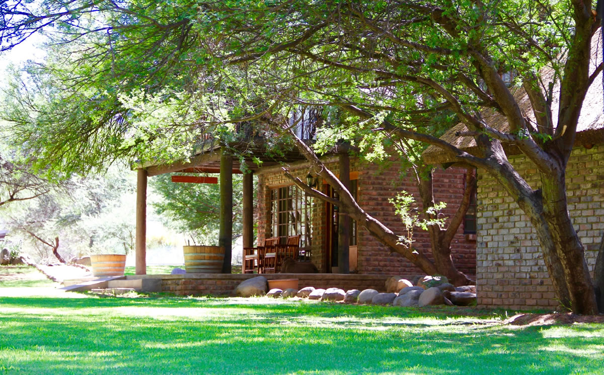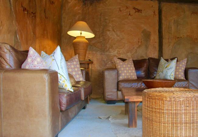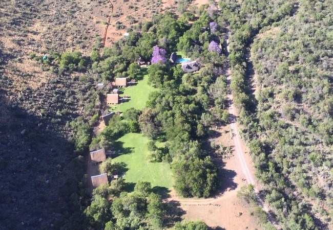 The secluded bush camp consists of seven chalets, a Lounge / Conference Centre, Bar and Boma surrounded by rocky crags and the Nuweveld Mountains. The chalets were designed and built by the game farm owner, Werner Koster, who exclusively used local poplars and stone for their construction. The Rustic décor is completed by slate floors, hand made furniture and wood finishes.