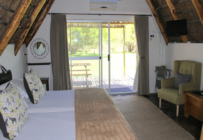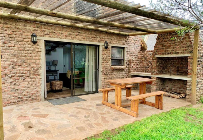 Stylishly decorated, each chalet sleeps four with an en suite bathroom, fully equipped kitchen and own private braai (barbecue) facility. Each chalet has its own private parking area and is comprehensively furnished including airconditioners for summer and heaters for winter. All the chalets have fully equipped kitchens for a self-catering holiday, including a private braai area.