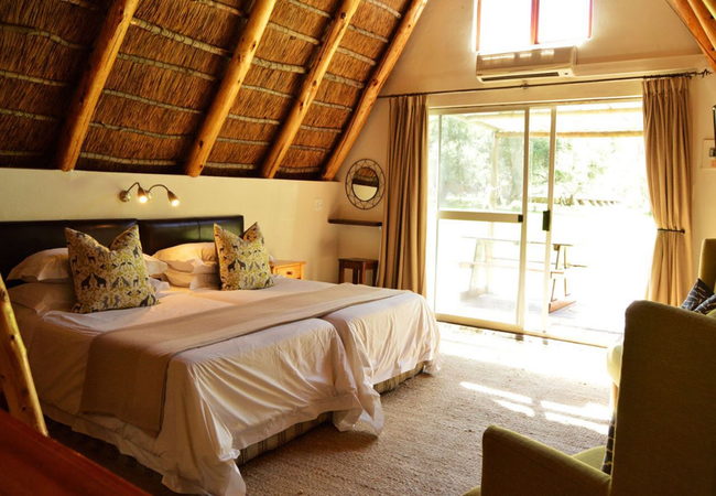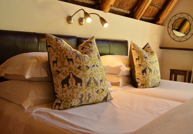 Stylishly decorated and each chalet sleeps four guests (two adults and two children under 12). The chalet has an en-suite bathroom and a a fully equipped kitchen and own private braai (barbeque) facility. Each chalet has its own private parking area and is comprehensively furnished.