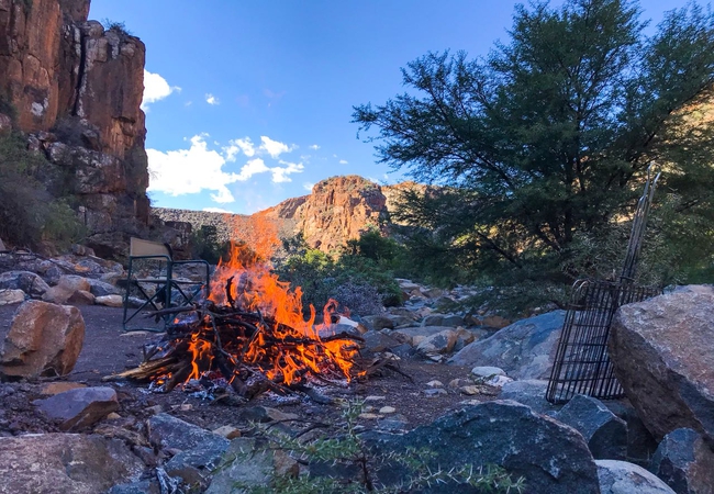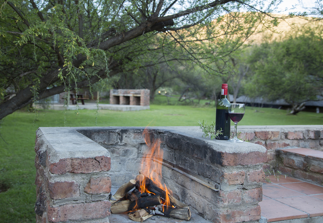 All the chalets have fully equipped kitchens for a self-catering holiday, including a private braai area. Groups of 6 or more guests can indulge in a meal prepared in true Karoo style next to the cosy campfire in the open air boma. Dinner bookings required on day of arrival should be made 24 hours before check in. Chalet braai and salad packs can be arranged. Please let us know if there is any specific dietary requirements.