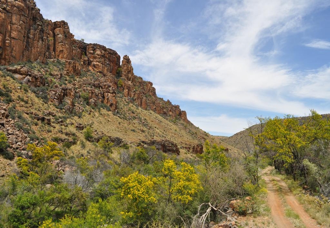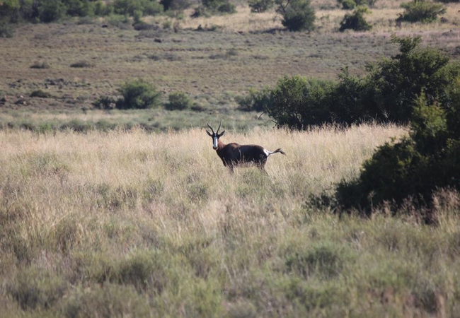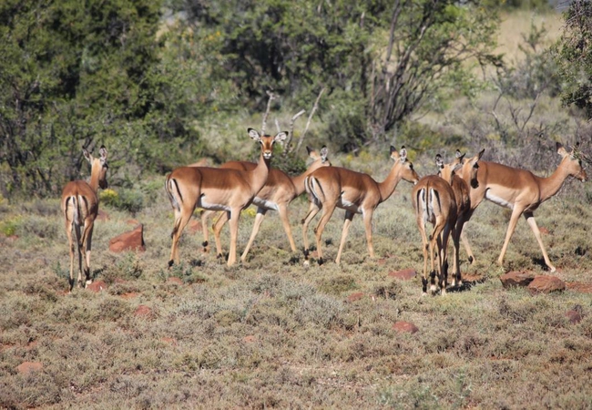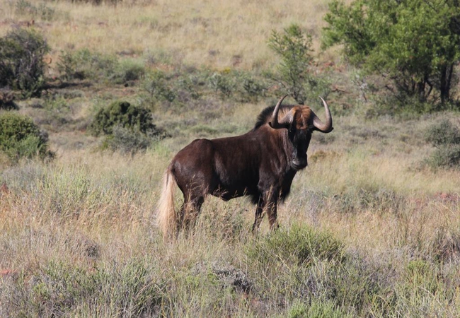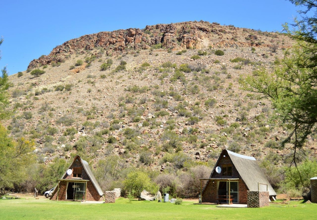 Red Hartebeest, Aardwolf, Kudu, Giraffe, Gemsbok, Klipspringer and Wildebeest roam the plains above the camp, and at night several species such as Black Wildebeest, Impala, Kudu and Bushbuck regularly visit the camp itself and can be seen from your chalet. The night sounds of jackal calling create the ambiance of Africa and make this a nature lover's paradise.