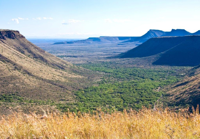 Ko-Ka Tsara Bush Camp meaning "small bucks kloof" in Khoi, is set in the Nuweveld Mountains of the Great Karoo, 8km outside Beaufort West. This intimate and exclusive bush camp is situated on a private Game Reserve. 10,000 of the 70,000 hectare reserve is dedicated to the 24 species of game which include the protected Mountain Zebra and Bontebok.