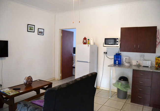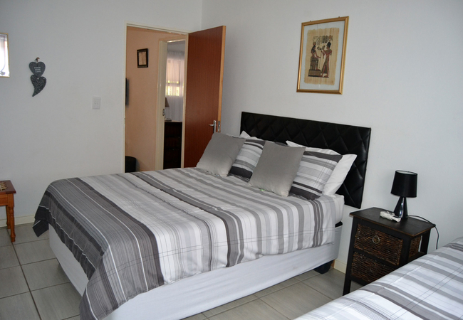 1X double bed 1X single bed, separate bathroom with shower, lounge/kitchen equipped with electric frying pan, microwave, 2 door fridge, aircon, kettle, toaster, cutlery, crockery, bedding, TV, parking, communal braai, 6 km from Maputo Border, 8 km from Kruger Park Crocodile Bridge gate, very close to shopping centre