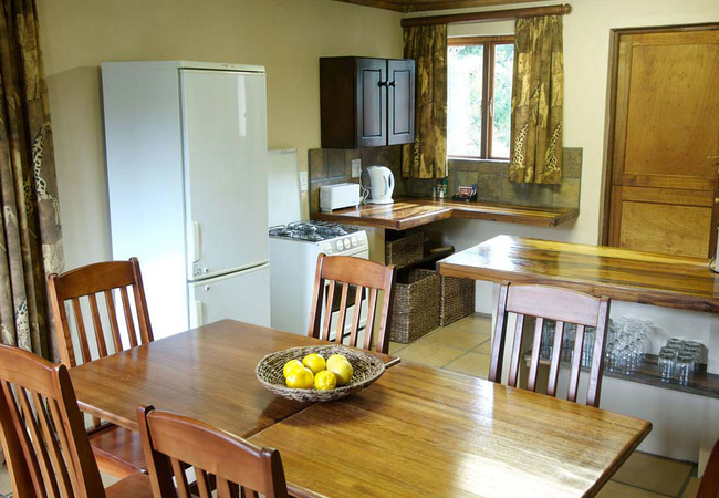 King Fisher House has a lounge with fire place, dining area and fully equipped kitchen, three bedrooms (2 with double beds and 1 with 4 single beds), 2 en-suite bathrooms and a guest loo. The large verandah with built-in braai is great for spending time outside enjoying the spectacular scenery.