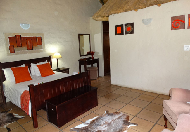 Awarded a four star grading by the Tourism Grading Council of South Africa and a Superior Accommodation rating by AA Travel, this untouched expanse of 1200ha with its thorn bushveld and highveld grassland offers an unparalleled experience to nature lovers. The biodiversity creates a perfect environment for the prolific birdlife and a wide range of indigenous trees, shrubs and wild flowers. Game on the farm includes zebra, blue wildebeest, eland, kudu, blesbok, warthog, duiker and many more.