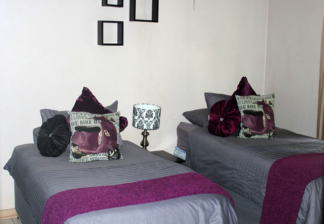 One bedroom furnished with two single beds, a kitchen, DStv, air-con, bathroom with a shower.