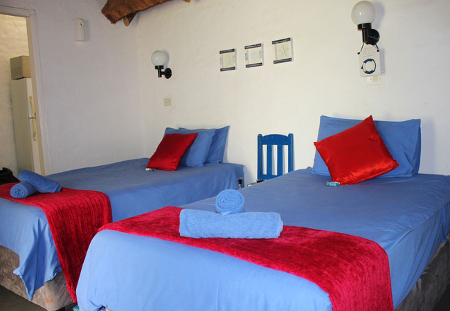 One bedroom, 2 single beds - kitchen - DSTV - air-con, bathroom with a shower. Accommodation is on a bed and breakfast basis while the cozy Komma Nader thatched restaurant and licensed bar will provide optional dinners in true bushveld style.