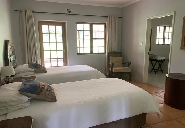 Kransberg Country Lodge has six en-suite bedrooms. Four rooms have double beds and two have two single beds. All six rooms have ceiling fans. Rooms 1, 2 and 3 have garden views from the veranda and Rooms 4, 5 and 6 have mountain views.