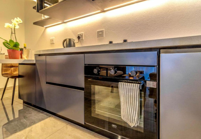 Kravit Premier Suites guesthouse in Glenferness provides ample space in the open-plan lounge and kitchen. The bedroom has an extra-length Queen-size bed and a luxurious shower.