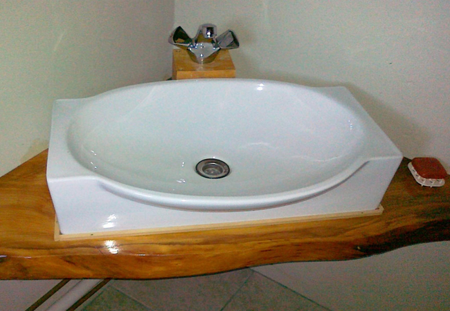 The main bedroom is furnished with a double bed and a second bedroom has two single beds. In addition there are two single beds in the living room. The inside bathroom is fitted with a shower, toilet and basin and there is also an outside bathroom fitted with a bath, shower, toilet and basin.