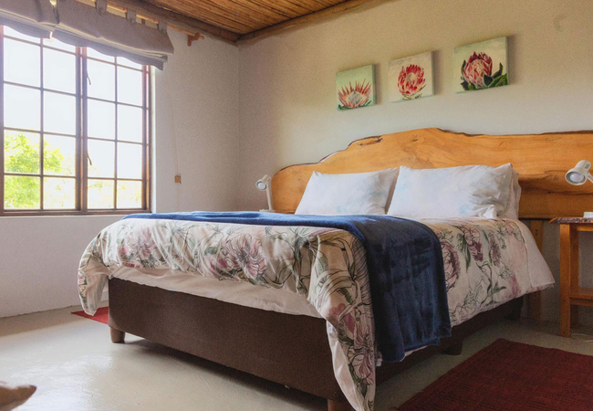The chalet is air conditioned and has a fireplace for the chilly winter months. There is a kitchenette equipped with a microwave, fridge and tea / coffee making facilities. The sitting area is comfortably furnished. Facilities include fans, a braai area and free Wi-Fi (at the main farmhouse).