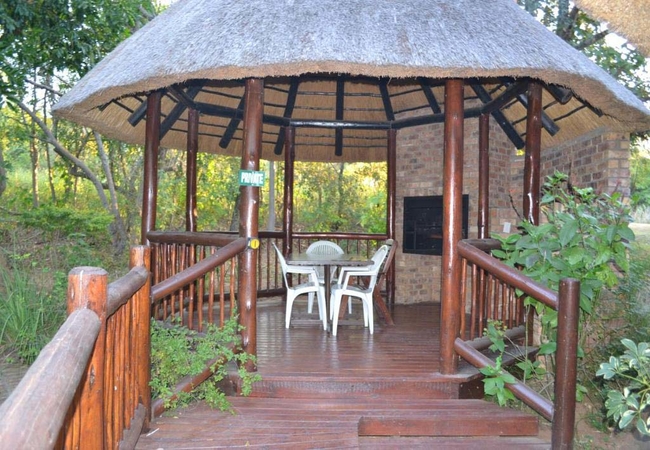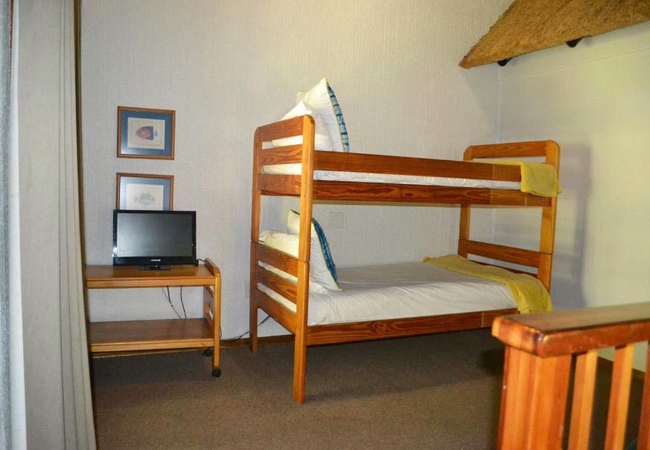 Kruger Park Chalet 233 is a self-catering unit nestled between large indigenous trees and a small stream, which is guaranteed to create an atmosphere of peace and relaxation. This chalet also has its own detached Lapa area, with extra braai facilities, ensuring that you enjoy the outdoors irrespective of the weather. Two covered parking bays are available for the guests occupying this unit. The chalet is a duplex unit and the sleeping area is sub-divided into three areas: On the first floor is the main bedroom which has a double bed, a second room which has two single beds pushed together and on the second floor is a third bedroom with a further two single beds pushed together and a private loft area with a bunk bed, suitable for children under the age of 12 only. The chalets sleep strictly a max of six adults and two children under the age of 12. Each chalet offers three bathrooms ensuring that each couple has bathing privacy. We offer the hotel suite DStv package. Regretfully no smoking and no pets are allowed.