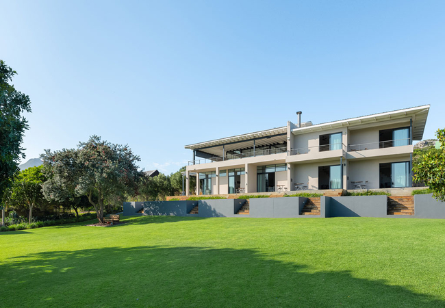 The kitchen is fully equipped for your self catering stay. The living areas are equipped with a luxury Italian leather couch, TV with DStv, Wi-fi and a dining table. A sliding door opens onto a private patio overlooking the swimming pool, undercover braai area and the beautiful one acre garden.