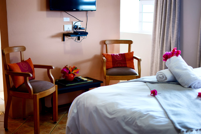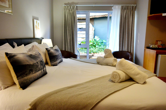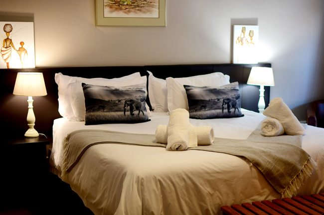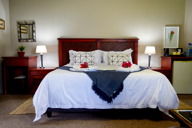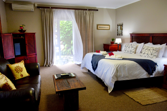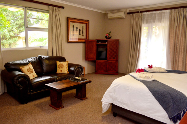 Our en-suite guest rooms are situated around a tranquil indoor garden and each room has it's own private entrance. All the rooms and cottages are equipped with tea/coffee making facilities, hairdryers, DSTV/M-Net and air – conditioners (warm and cold). Crisp percale linen is used on all our beds and towels are provided.