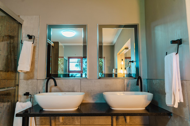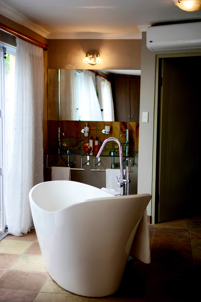 Our three luxury rooms have a full en-suite bathroom with views of our beautiful garden and farm. All the rooms are equipped with tea/coffee making facilities, hairdryers, DSTV/M-Net and air – conditioners (warm and cold). Crisp percale linen is used on all our beds and personal toiletries and towels are provided.