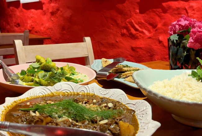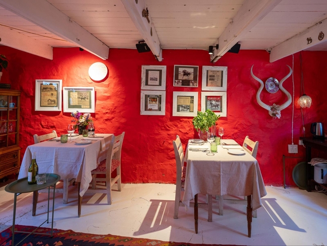 Gourmet food is served on gleaming yellowwood tables in a cosy dining room. The resident chef uses farm fresh produce including their world-famous succulent Karoo lamb. Vegetarian are catered for with delicious dishes of couscous stuffed peppers and crisp vegetable pastas. Breakfasts include home-made breads, muffins jams and preserves with fresh fruit and farm butter and cream.