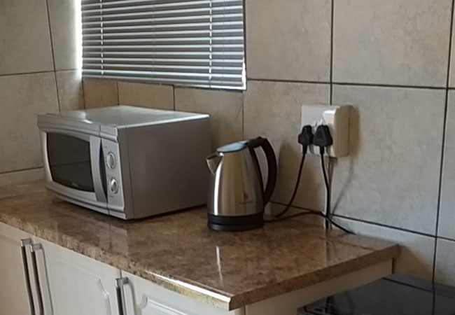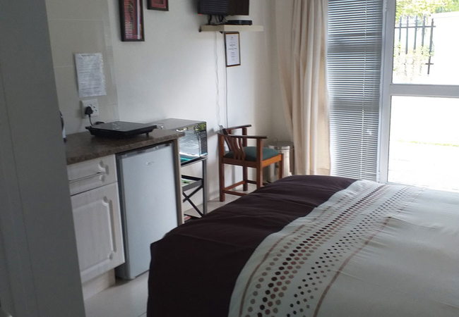 The Self-Catering Units each have a double bed and a kitchenette with a two plate stove, counter top oven, crockery, cutlery and a fridge. All the units have a TV with DStv, tea / coffee making facilities, a microwave and ironing facilities. There is secure parking, Wi-Fi and access to fax and email facilities.