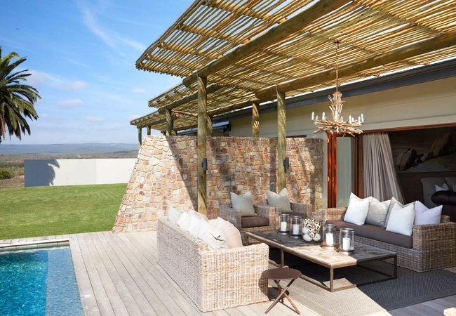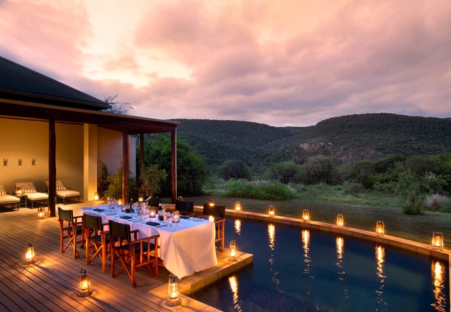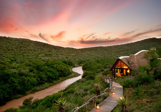 Great Fish River Lodge is located in the magnificent malaria-free Eastern Cape, Kwandwe Game Reserve and is within easy reach of South Africa's beautiful coastline and provides the perfect beginning or ending to a journey along the famed Garden Route. The Kwandwe Private Game Reserve consists of 22 000 hectares of untamed African bushveld.
