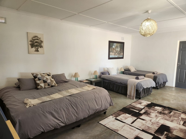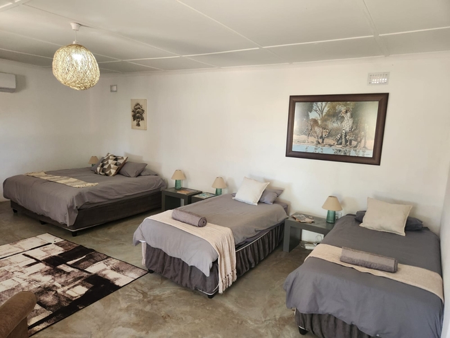 Onechalet is furnished with a king sized bed and 3 single beds, while the other is furnished with a king sized bed, a double bed and a single bed. The en-suite bathroom is fitted with a shower, toilet and wash basin. The room has a beautiful river view, air conditioning, coffee/tea, kettle and a bar fridge. Braai, braai pan, cutlery and crockery. There is an outdoor area for your enjoyment.