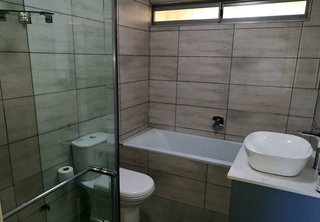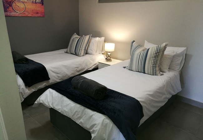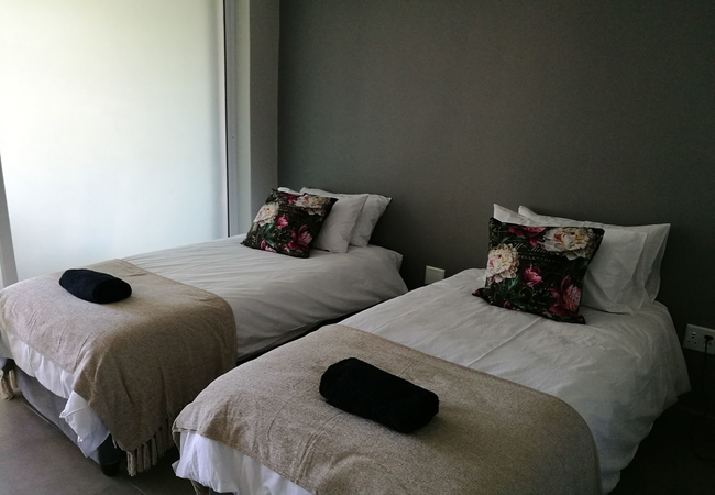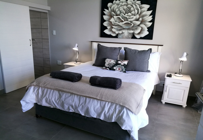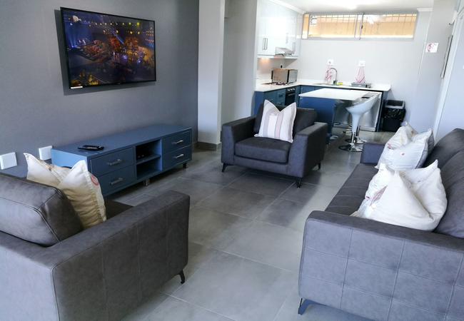 The living area has a dining table, comfy seating, free Wi-Fi and a TV with DStv. The fully equipped kitchen has granite counters an electric oven, dishwasher, fridge/freezer, microwave and washing machine.