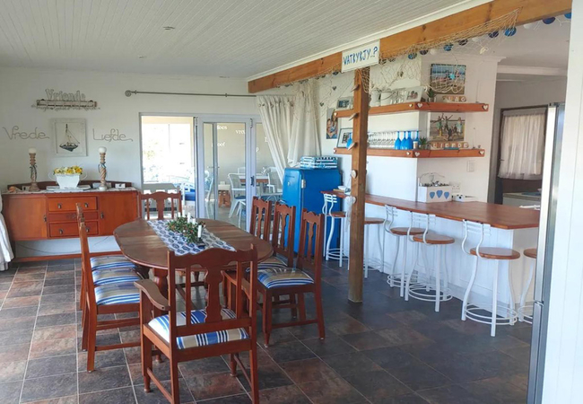 Kykmar is a self catering holiday home in Stilbaai with five bedrooms. There are three bedrooms with double beds and two bedrooms with two single beds.