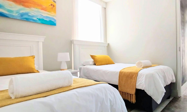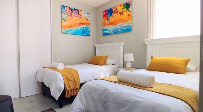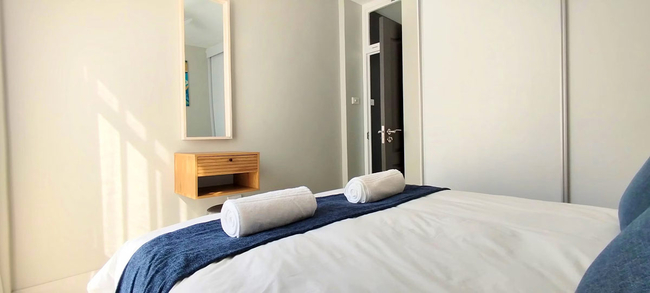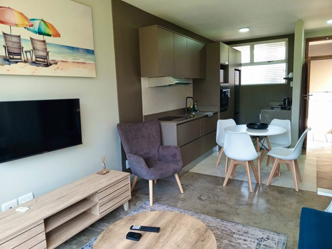La Ballito 107 is a fully equipped self-catering apartment located in a secure complex in the vibrant center of Ballito. Ideal for a family getaway on the Dolphin Coast, this complex features a refreshing swimming pool where guests can cool off on warm summer days. Accommodating two adults and two children, the apartment comprises two bedrooms and a bathroom. The main bedroom is furnished with a queen-size bed, while the second bedroom has two single beds, perfectly suited for children. The bathroom is fitted with a shower, washbasin, and toilet. Quality linen and bath towels are provided, though guests are kindly requested to bring their own swimming towels. The open-plan living area includes a fully equipped kitchen with a stove, oven, microwave, fridge-freezer, cutlery, crockery, and a dishwasher for added convenience. Adjacent to the kitchen, a dining table provides a welcoming space for shared meals. The lounge area features comfortable seating and a flat-screen TV, while complimentary Wi-Fi ensures guests stay connected throughout their stay. Guests have full access to the complex’s communal swimming pool, complete with braai facilities for relaxed outdoor dining. The apartment’s prime location places it within easy reach of shops and restaurants, making it the perfect base to experience the charm and energy of Ballito and the North Coast.