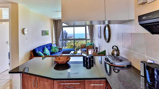 La Ballito 302 is ideal for two adults and two children and has one bedroom furnished with a double bed. There is also a bunk bed in an alcove area. The bathroom is fitted with a bath with hand shower, toilet and basin. Bath and hand towels are provided, please bring your own beach towels. Linen and towel changes every 7th day. The kitchen is equipped with a two-plate gas hob, fridge, coffee machine and kettle. There is a lounge area with a smart TV. Netflix is available. Guests can log into their own DStv accounts. Uncapped Wi-Fi with a UPS for load shedding times is provided. Daily cleans include, sweeping, mopping, making up of beds, sanitizing of bathrooms, washing of dishes is unfortunately not included. Monday to Saturday (not on Sundays or public holidays). Toilet paper, small dishwashing liquid, hand soap and black bags provided on arrival only. Undercover parking is available for one vehicle and there is guest parking available. There are remote controlled security gates and a 24-hour security guard. There is a lift in the building which is generator operated during loadshedding.