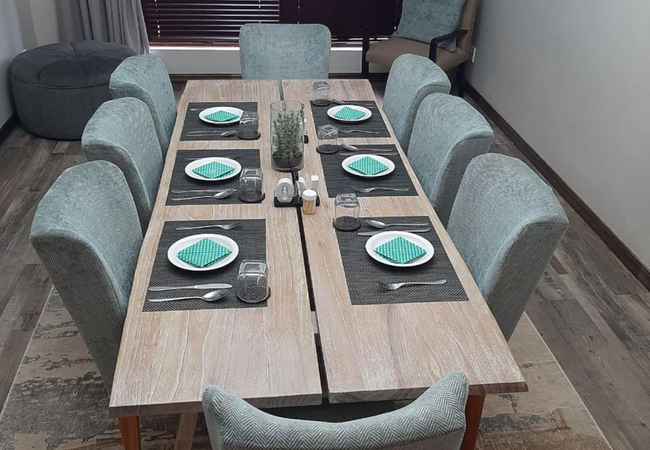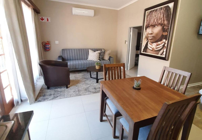 Suite 3 is furnished with a Queen-size bed and a sleeper couch is available. The en-suite bathroom is fitted with a shower, toilet and basin. The suite offers a private kitchen with induction stove, air-conditioning, a TV with DStv and Wi-Fi access. Guests have access to a communal kitchen and guest lounge.