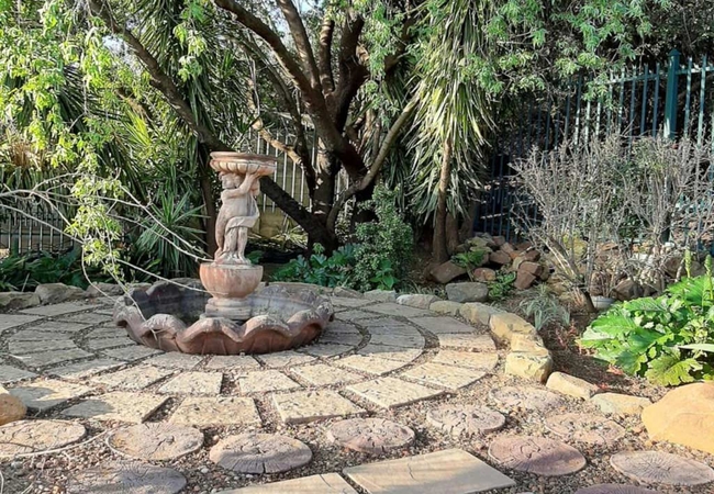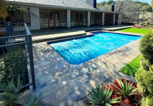 The large lounge offers comfortable seating, a large TV and meals can be enjoyed in the dining area. The communal kitchen is equipped with a stove and oven, a microwave, and a toaster. Guests can relax in the garden or cool down in the swimming pool. There is a boma braai area, and parking is available on the property.
