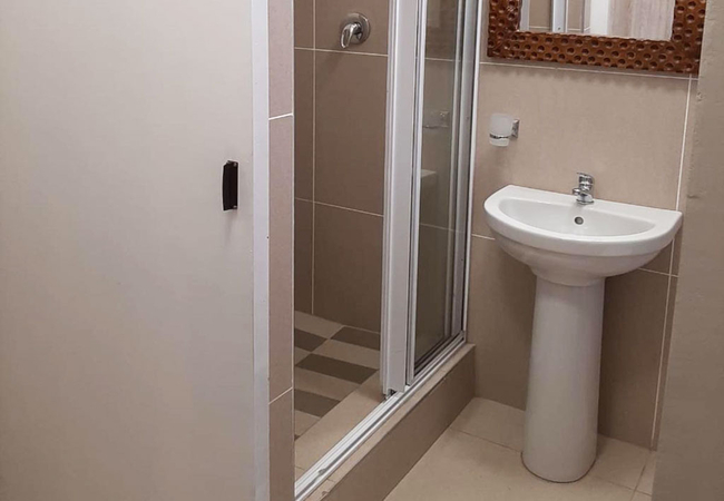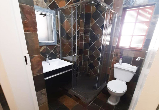 Standard King Room 4 is furnished with a King-size bed. This room shares the use of a bathroom fitted with a shower, bath, toilet and basin. The room offers air-conditioning, a TV with DStv and Wi-Fi access. Guests have access to a communal kitchen and guest lounge.
