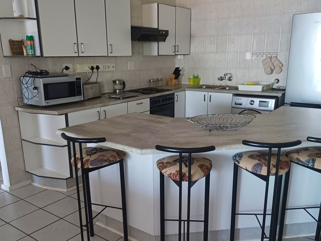 La Crete Sands 3 accommodates up to six guests in three comfortable bedrooms, with two bathrooms. The main bedroom is fitted with a double bed and has an en-suite bathroom equipped with a shower, basin, and toilet. The second bedroom also offers a double bed, while the third bedroom is furnished with two single beds. The second bathroom, shared by these two rooms, features a shower over the bath, a washbasin, and a toilet. Fresh linen and towels are provided for your convenience. The kitchen comes fully equipped with a fridge-freezer, stove, oven, microwave, washing machine, and all essential cutlery and crockery. There are also tea- and coffee-making facilities and a breakfast bar with stools for casual dining. The open-plan living area is furnished with a dining table, comfortable seating, and a TV with DStv. Wi-Fi access is also available. The apartment includes a balcony with a braai (barbecue) area, a dining table, and breathtaking views of the ocean. Secure on-site parking is available.