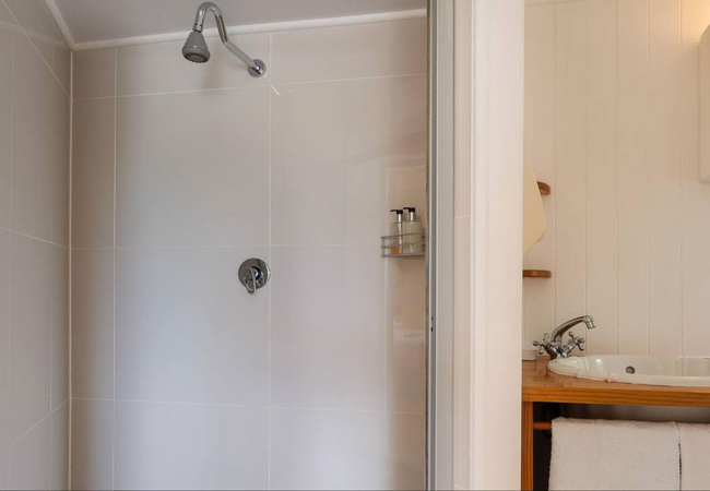 Lagoon Cottage Chalet has one bedroom furnished with a Queen-size bed. The en-suite bathroom is fitted with a shower, toilet and basin.