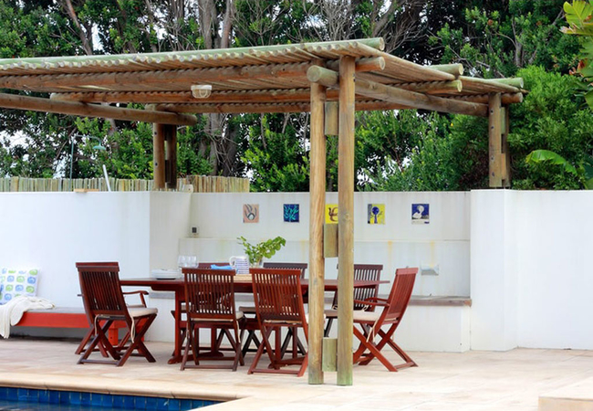 Combining the most modern luxurious facilities with a panoramic view of Walker Bay, La Gratitude's fenced outside entertainment area includes a multi-jet, multi-functional Jacuzzi, a child friendly pool, pool loungers, a 12-seater garden dining area and a built-in braai/barbacue.