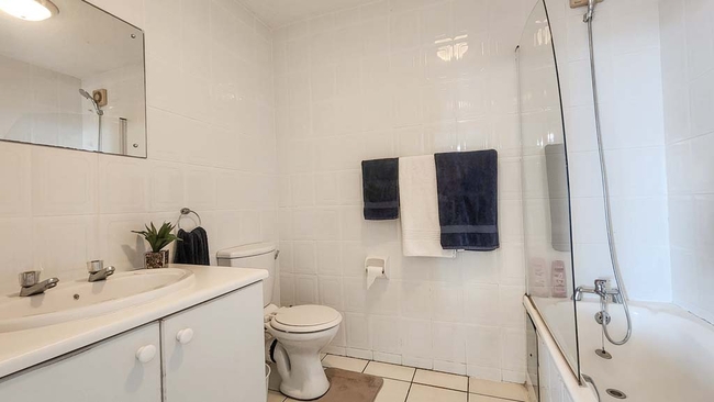 Boasting sea views, the main bedroom is furnished with a double bed, a ceiling fan and a door leading to the veranda. The en-suite bathroom consists of bath, toilet and basin. The second and third bedrooms have two single beds and a ceiling fan. The second bathroom consists of a bath, shower, toilet and basin.