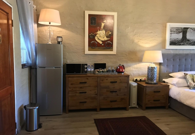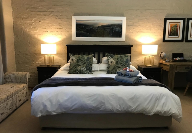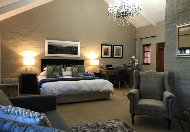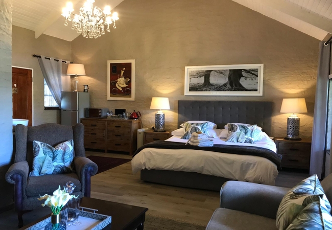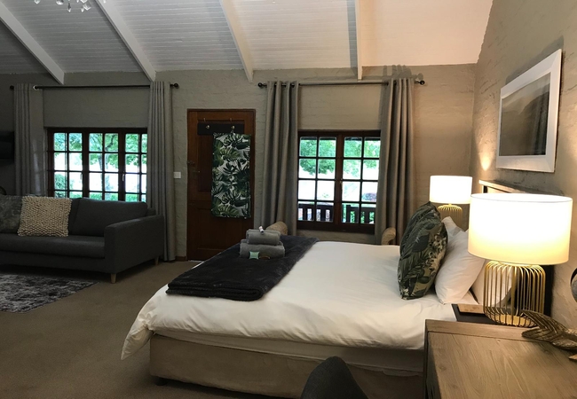 Lakeside Chalets are open-plan and furnished with a King-size bed. The en-suite bathroom is fitted with a bath, shower, toilet and basin. There is a comfortable sitting area with a fireplace, a desk, fridge, tea / coffee making facilities, hairdryer, bathroom amenities and a patio with views of the lake, gardens and mountainside.