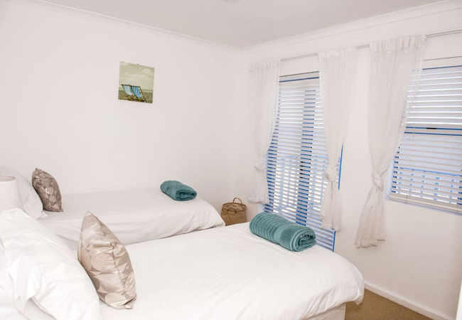 The main bedroom is furnished with a Queen-size bed, the second with a double bed and the third and fourth bedrooms are each furnished with two single beds. There are three bathrooms fitted with a bath, shower, toilet and basin. One of these is the main en-suite.
