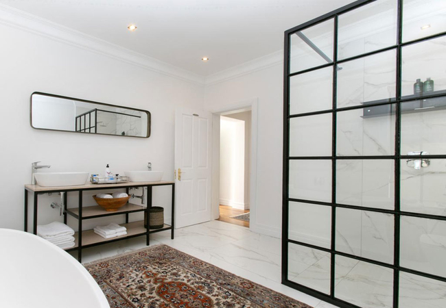 La Maison On Main is a self catering holiday home in Paarl with three King / twin bedrooms with down pillows and duvet inners. The main bathroom is fitted with a stand-alone bath, shower, toilet and basin. There is a guest toilet near to the back door leading to the lap pool for easy access from outside.