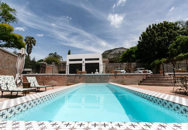 Hidden away in the small town of Paarl you will find La Maison On Main, the two-story Villa is self-contained, with a private back garden. La Maison On Main has three King / twin bedrooms with down pillows and duvet inners. The main bathroom is fitted with a stand-alone bath, shower, toilet and basin. There is a guest toilet near to the back door leading to the lap pool for easy access from outside. The fully equipped kitchen includes a double door fridge, gas top, electric oven, microwave, kettle, toaster, Nespresso station and a dining table. A large open-plan living room welcomes guests upon entering the Villa. The living area has an indoor fireplace, smart TV, Wi-Fi. All the windows have security bars. There is secure parking in the back courtyard and private parking in front of the villa just off the main road.