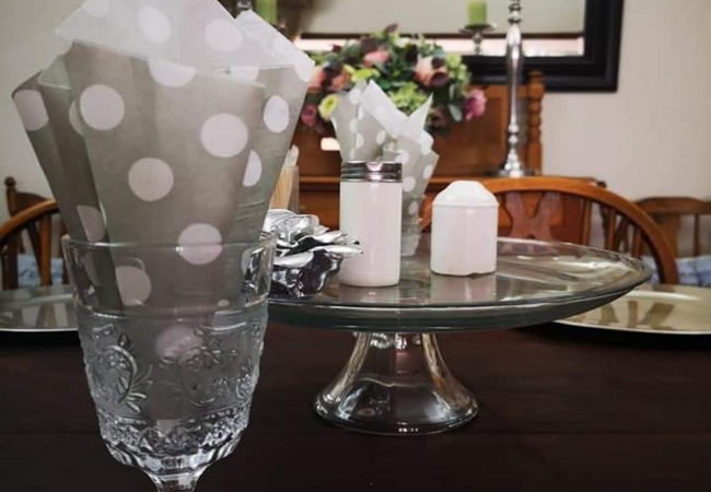 The Crystal Rose room is a semi-self-catering room furnished with a double bed and an en-suite bathroom fitted with a shower, toilet and basin. The room has a microwave oven, bar fridge, cutlery, desk/dressing table and DStv.