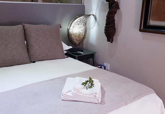 The Strelitzia room is furnished with a double bed and has an en-suite bathroom fitted with a shower, toilet and basin. It offers you an air conditioner, heater, heated blankets, microwave oven, bar fridge, desk/dressing table and DStv.