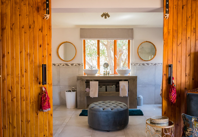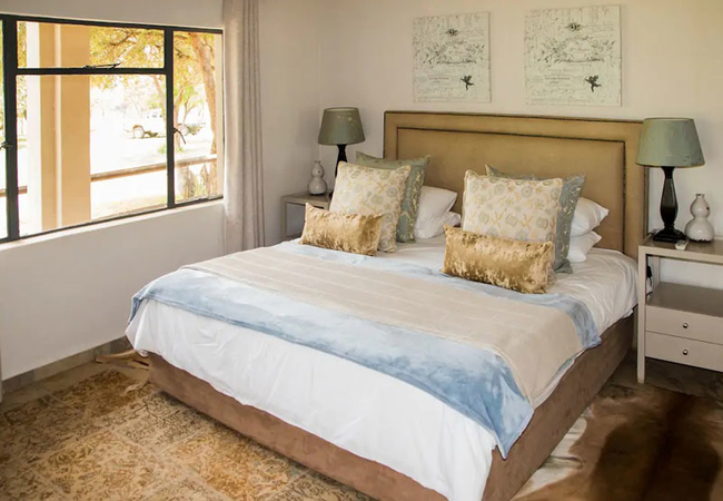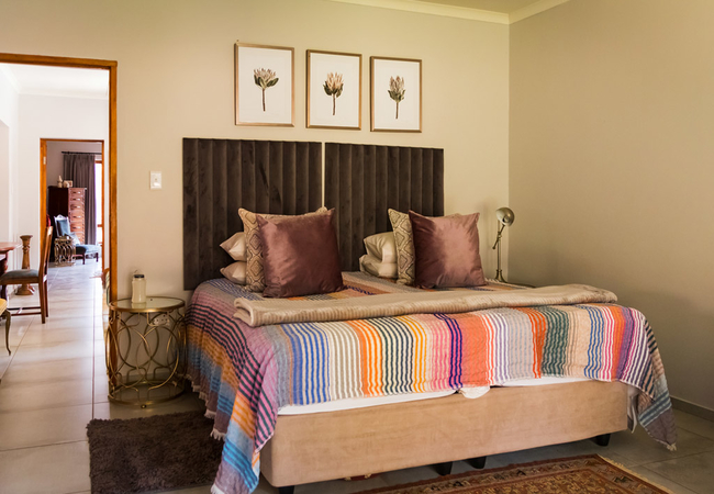The Pophuis is able to sleep up to four guests in two air-conditioned bedrooms; each with an en-suite bathroom. The kitchen is fully equipped and makes use of a fridge / freezer, tea / coffee making facilities, stove, oven and many other necessities. The lounge is comfortably furnished with seating and a fireplace. The house makes use of free Wi-Fi, a pool, sheltered lapa and is serviced daily.