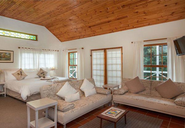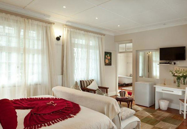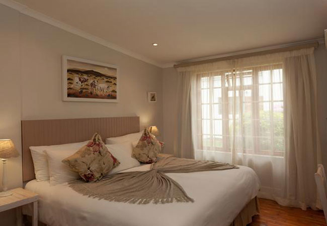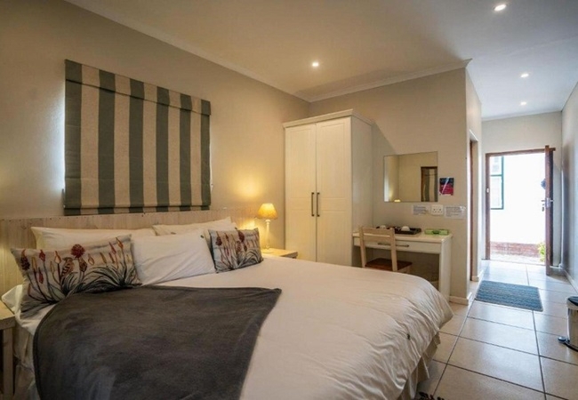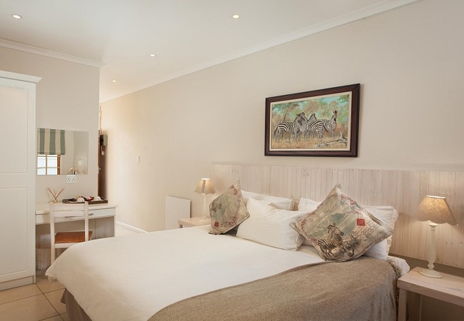 The Lanherne Deluxe Room is furnished with a king-size bed which can be converted to a twin bed option. An en-suite bathroom equipped with a shower, toilet and basin. The room has its own private entrance which leads to a garden. DStV, coffee / tea-making facilities as well as a desk, safe, and Wifi