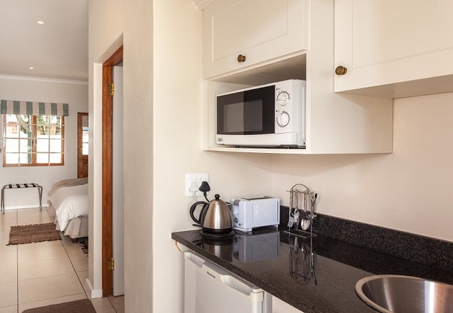 The Lanherne Semi-self catering room is furnished with a king-size bed that can be converted to a twin bed option. An En-suite bathroom equipped with a shower, toilet and basin. The room has a kitchenette and its own private entrance. DSTV, coffee/tea-making facilities, desk, safe and small fridge as well as WIFI.