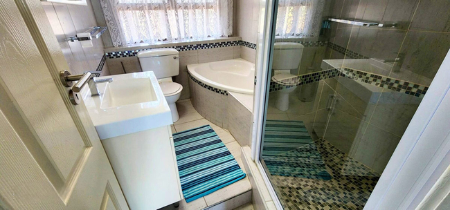 This self-catering duplex is ideal for families or groups of friends seeking a convenient and comfortable base from which to explore the surrounding area. The first bedroom features a queen-size bed and an en-suite bathroom with a bath, shower, washbasin, and toilet. The second and third bedrooms are each furnished with two single beds and share two bathrooms. One shared bathroom includes a shower, washbasin, and toilet, while the other offers a bath. Linen is supplied, although guests should bring their own bath and swimming towels.
