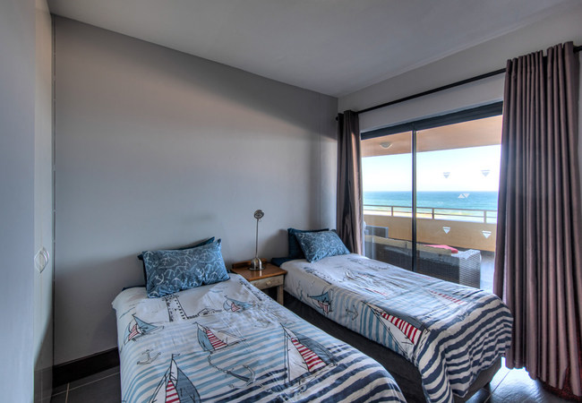 This glorious unit is light and modern, sleeping six guests in three bedrooms. The main bedroom has a double bed, a dressing table and sliding doors that lead out to the balcony.