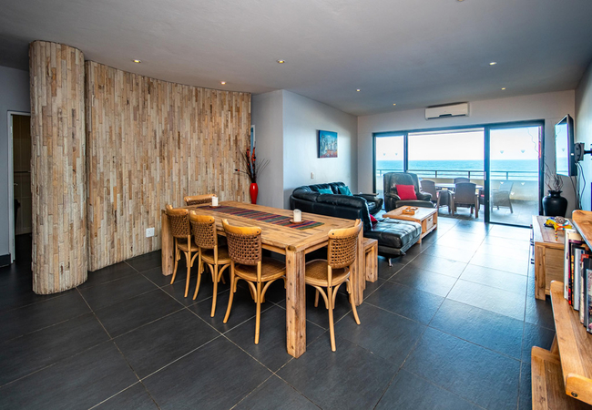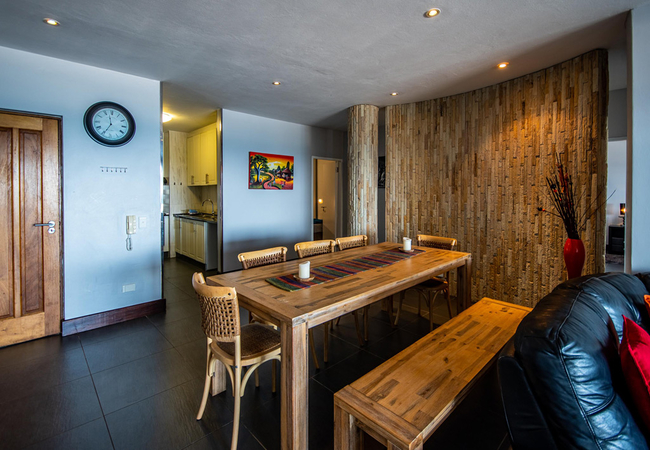 The Lazy Lizard 23 apartment is comfortable and the lounge area is a great place to relax and unwind on the couch in front of the TV watching your favourite DStv channel. The dining area sits alongside the lounge and next to the kitchen.