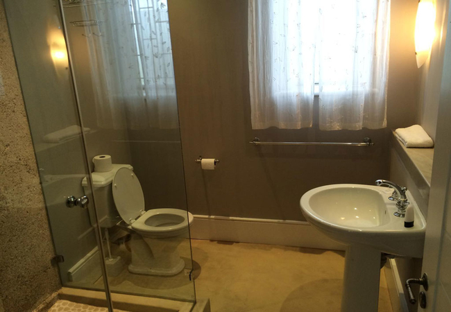 Le Bleu is a three bedroom garden view house, two rooms have an en-suite bathroom and one has a bathroom with bath outside the room. There are two Queen-size beds and one King-size bed. All bedding provided, please bring own bath and swimming towels.