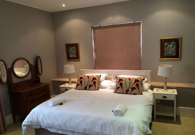 Le Bleu is a three bedroom garden view house, two rooms have an en-suite bathroom and one has a bathroom with bath outside the room. There are two Queen-size beds and one King-size bed. All bedding provided, please bring own bath and swimming towels. The kitchen is fully equipped and there is a braai area on the covered stoep. The living area has a television with selected channels only, feel free to bring your own DStv decoder and smart card. Guests have access to the facilities at the lodge, including the swimming pool.