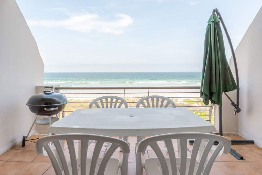 The living area leads onto the balcony which has outdoor furniture and braai facilities.
