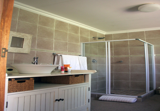 Room 2 has a private entrance, twin beds and a bathroom with a shower. There is a well equipped kitchenette.The room is equipped with a bar fridge and coffee / tea tray, TV (M-net and DSTV), security door and wireless internet connection.